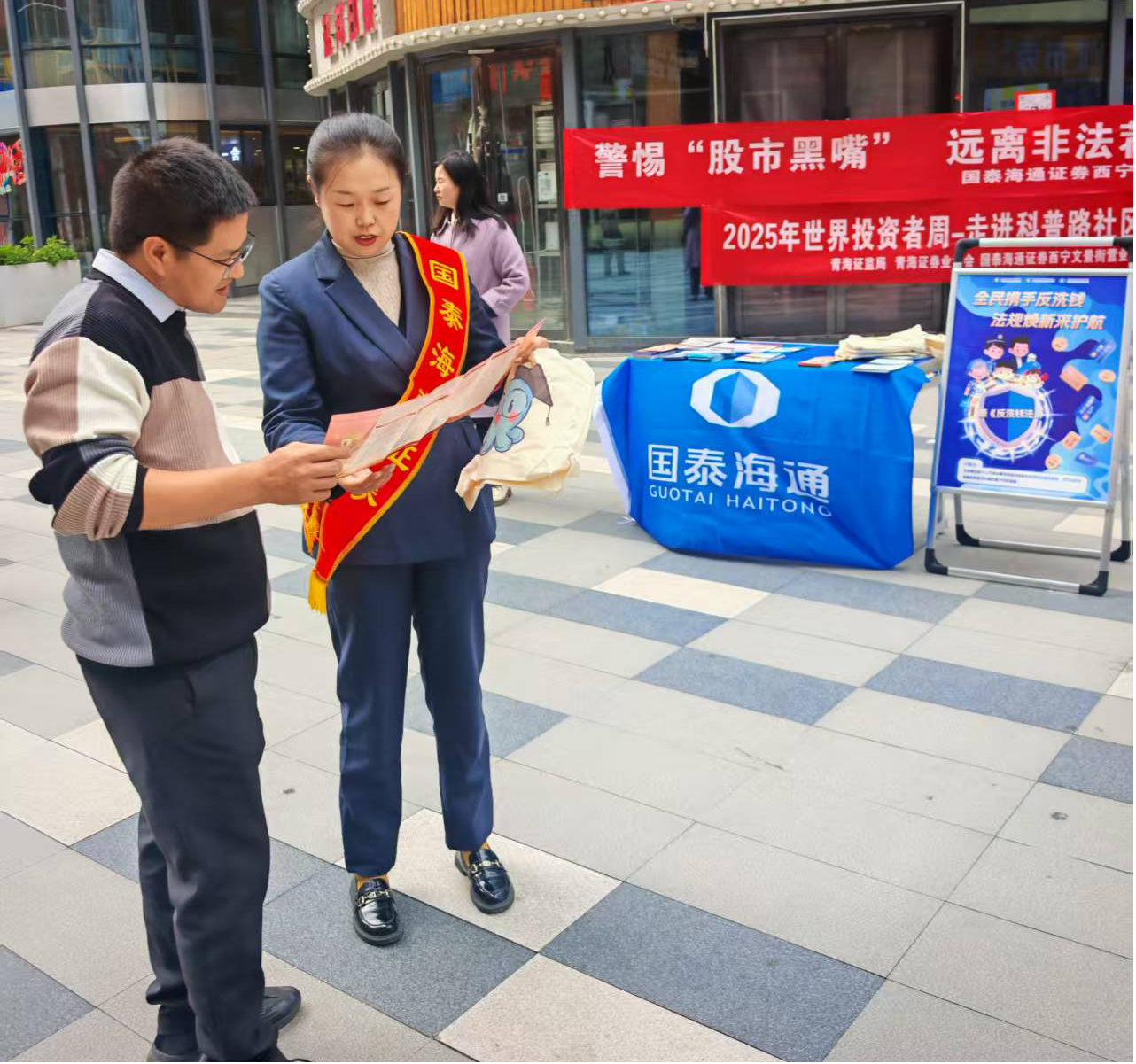 四、搭建交流平台,场景深度渗透。将投资者教育融入生活场景,进一步提升触达率。一是太平洋证券青海分公司、华龙证券西大街营业部、国泰海通文景街营业部、广发证券西宁营业部和方正证券文景街营业部走进商圈开展“2025年世界投资者周”户外宣传活动。通过悬挂主题横幅、设置投教展架、发放金融知识折页、答疑解惑等方式,向广大市民普及金融法规、业务规则及防非反诈知识,有效传播非法证券活动识别要点、投资者维权途径,强化公众风险防范意识,进一步提升市民的风险识别能力和自我保护意识。二是中金财富西宁证券营业部、广发证券西宁营业部邀请投资者前往营业部开展座谈交流活动,营业部员工通过“AI有‘虚’招,账户须‘实’防”、“非法荐股大识别”等典型案例介绍诈骗表现形式和危害,聚焦特定群体提供精准服务,不断提升投资者的防诈意识。三是华龙证券西宁投教基地走进社区开展投教活动,通过设立宣传点位、悬挂主题横幅、发放宣传资料及互动讲解等形式,向社区居民普及金融知识,宣传维权途径,切实履行投资者教育保护责任,助力构建健康理性的投资环境。